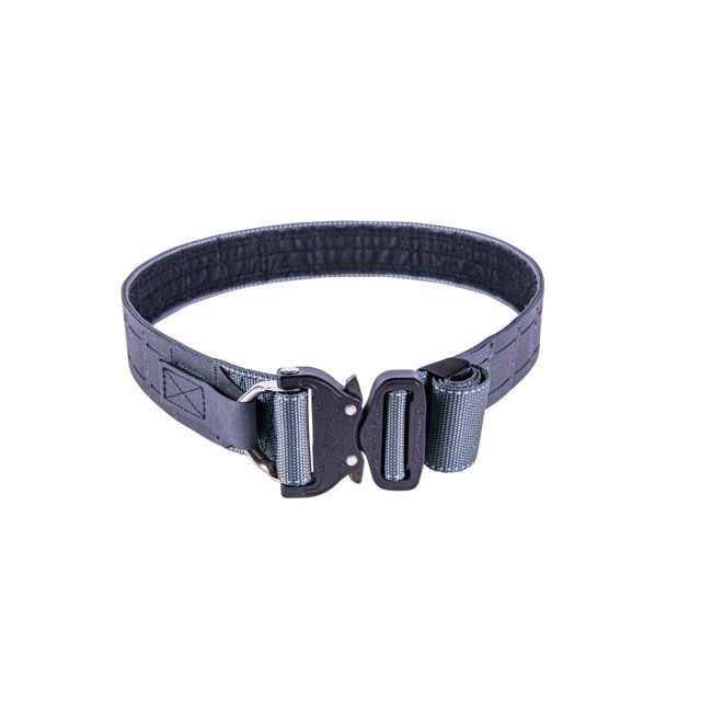 Die Außenseite dieses Gürtels ist mit einer PALS+ / Molle kompatiblen Lasercut Laminat Schicht versehen worden, auf der Innenseite ist Hakenklett vernäht