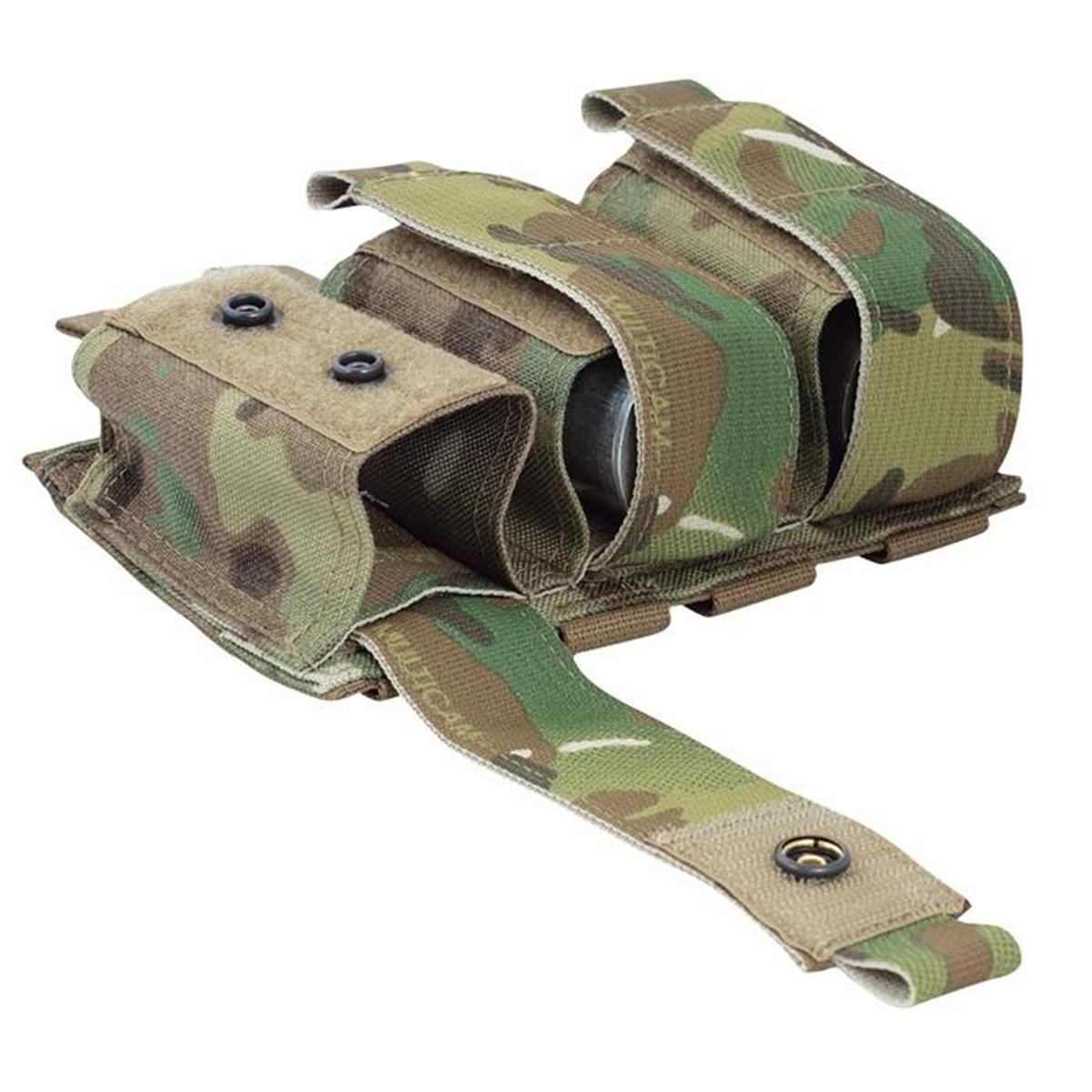 Diese Warrior Assault Systems Tasche bietet Platz für 40mm Granaten oder kleine NICO Flash Bangs. Die Tasche ist ausgestattet mit einer durch Klettband höhenverstellbaren Sicherung mit zusätzlichem Druckknopf. Mittels MOLLE-Schlaufen kann die Tasche flexibel an der Ausrüstung befestigt werden. Hergestellt aus wasserabweisendem, infrarot absorbierendem 1000DEN Cordura werden die Militärspezifikationen erfüllt.