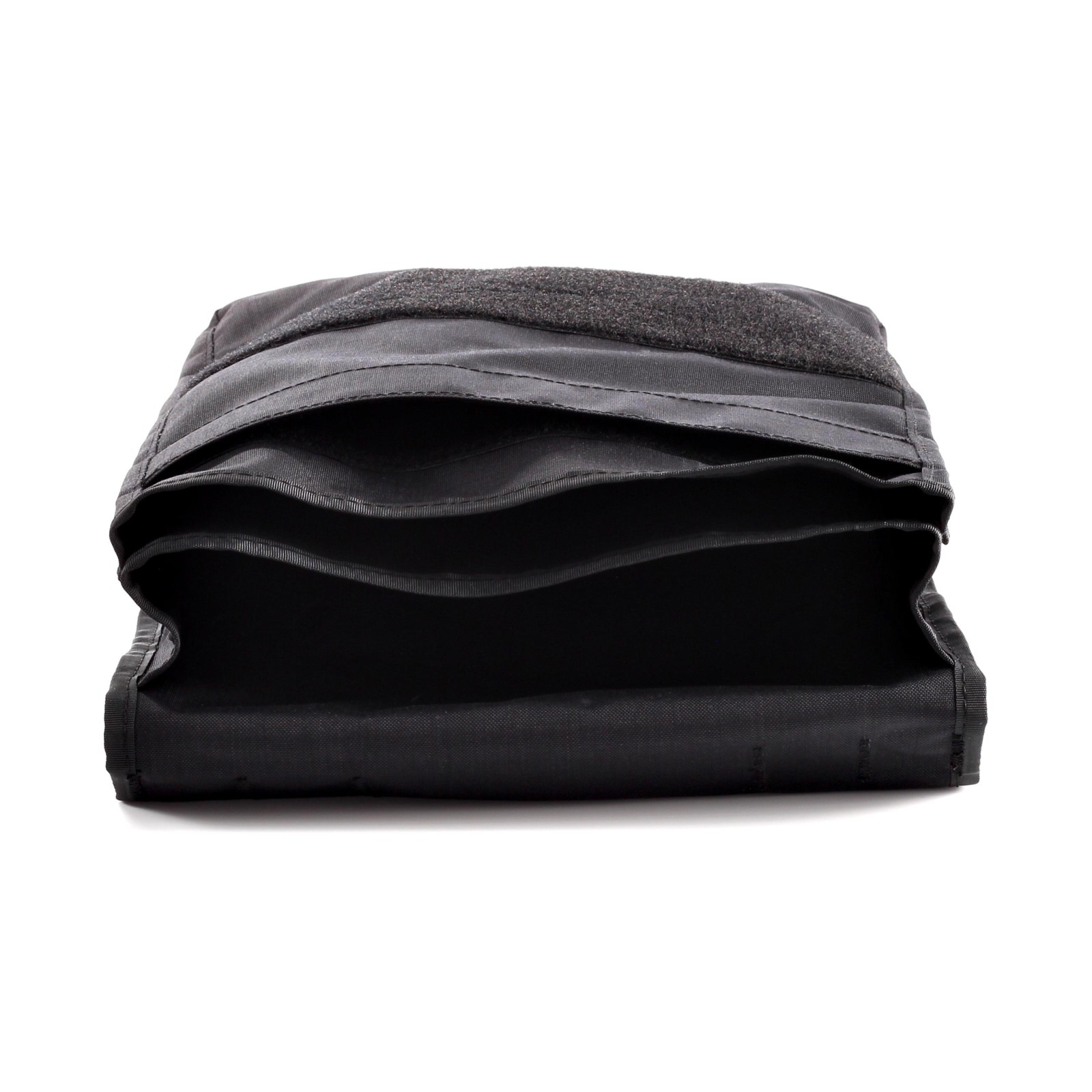 Die große Klettverschluss-Flap ermöglicht schnellen Zugriff auf den Inhalt und enthält ein flaches Reißverschlussfach für häufig benötigte Dokumente. Das unterteilte Hauptfach nimmt gefaltete Karten, Schreibunterlagen oder ein Tablet bis ca. 10" auf und wird durch ein zusätzliches Klett-Einschubfach für Marker, Lineal oder Kompass ergänzt. Auf der Rückseite befindet sich ein weiteres Reißverschlussfach für flache Meldeblätter oder Dokumente.