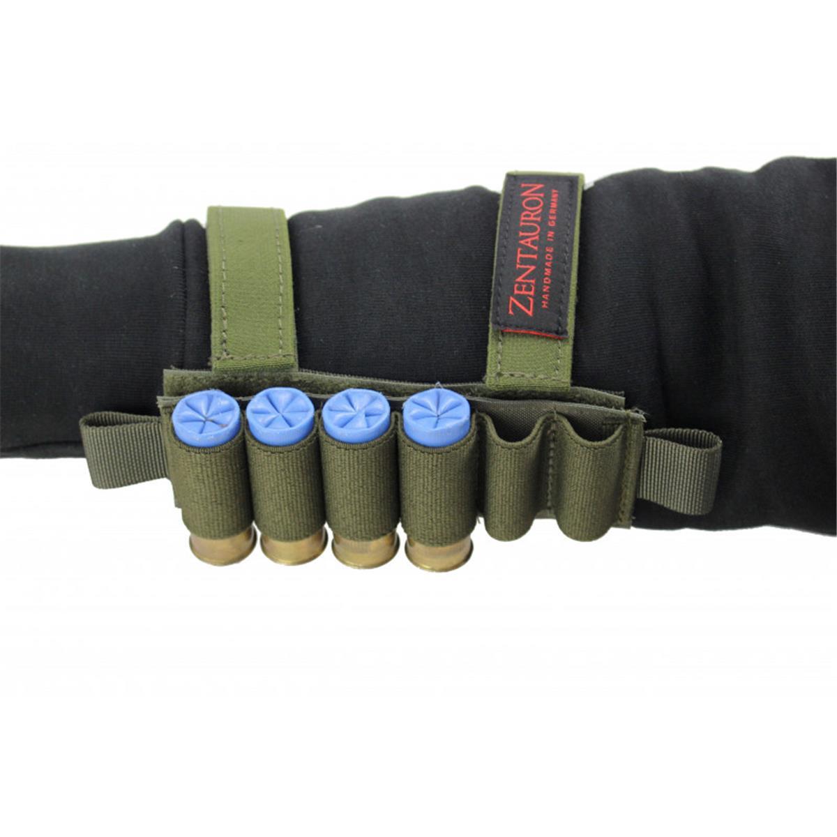 Das Unterarhalter Set für Schrotpartronen besteht aus mit zwei Patronen Halter mit jeweils 6 elastischen Schlaufen für die Patronen, einer selbstklebenden Flauschklettfäche zur Befestigung am Gewehr und dem Unteramhalter selber.