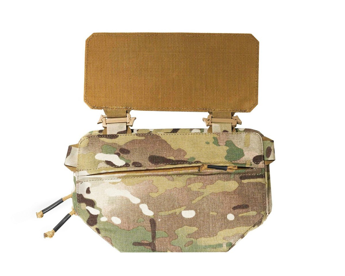 Die Dangler Pouch ist so konzipiert, dass sie ballistische Einlagen aufnehmen kann, um den unteren Teil des Unterleibs zu schützen.
