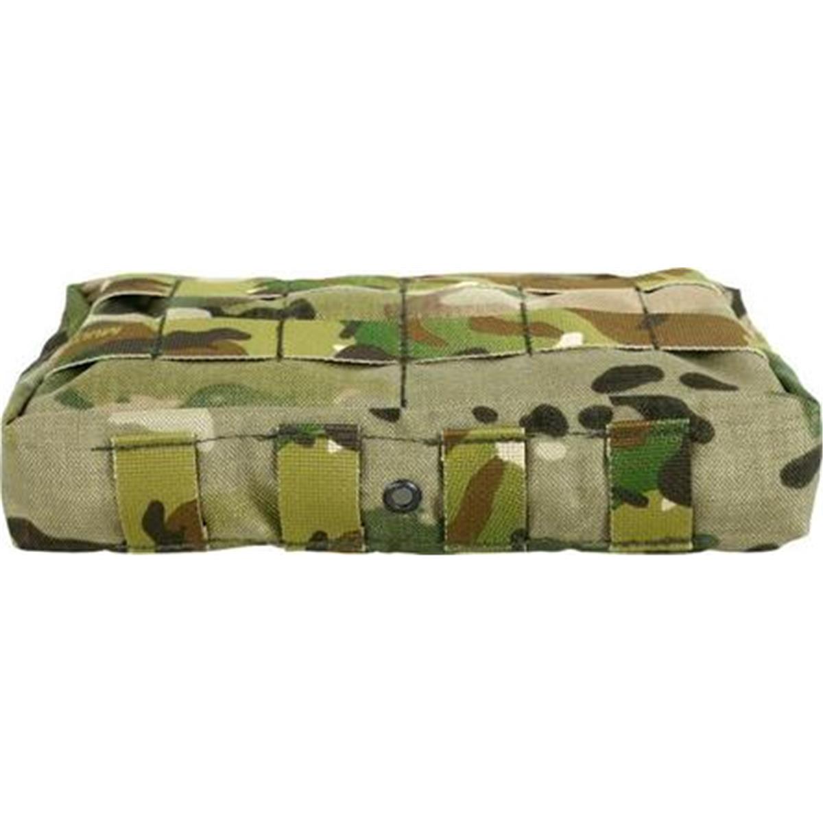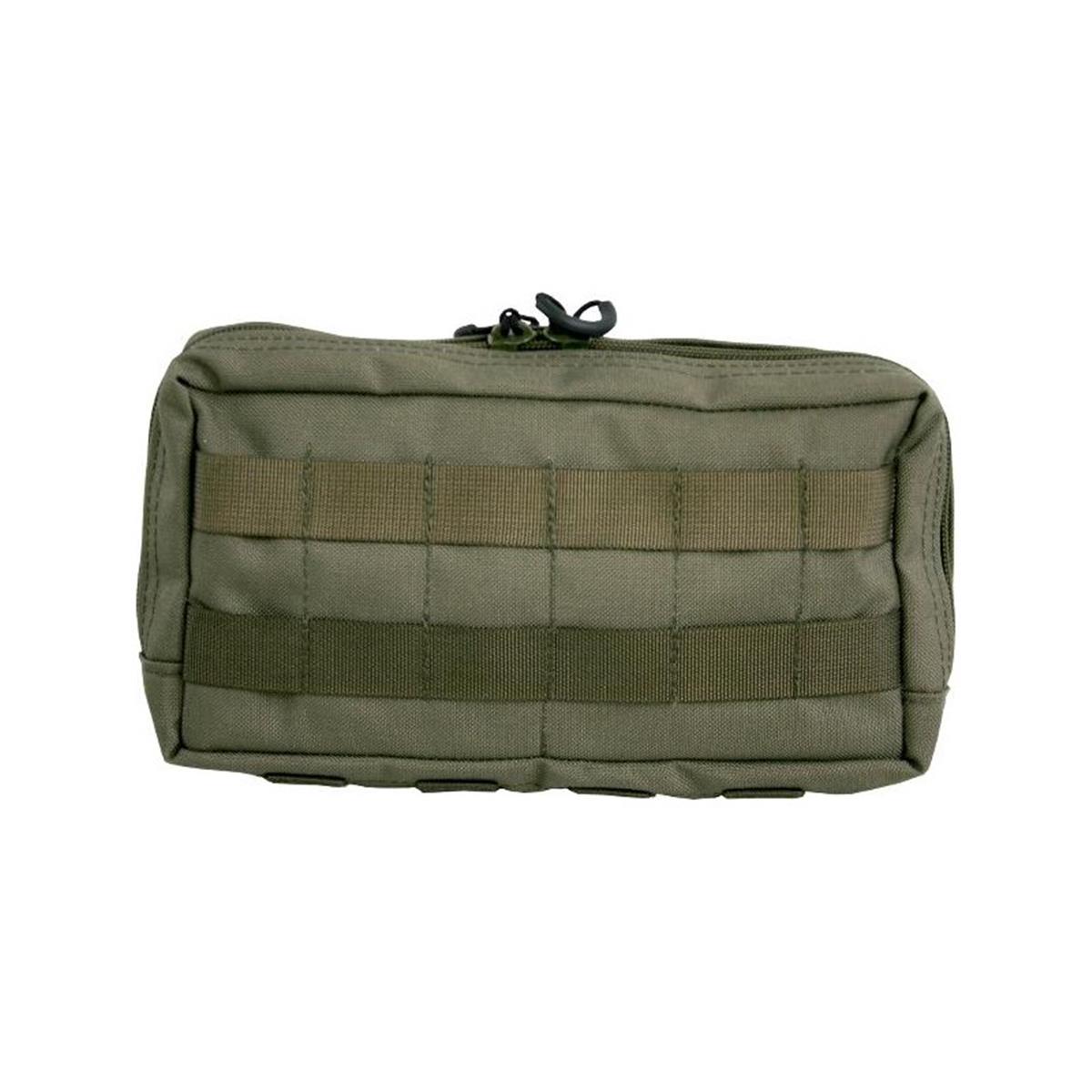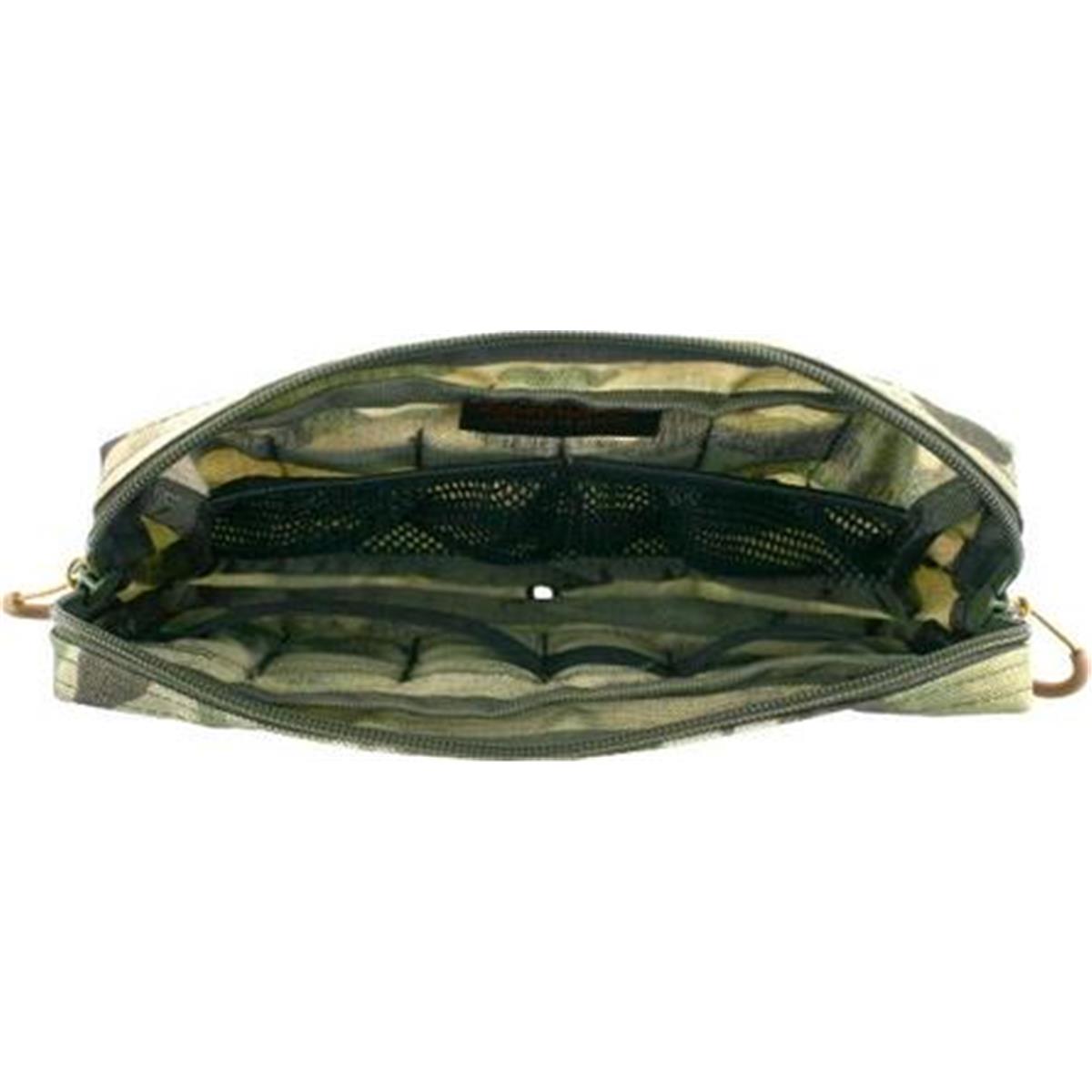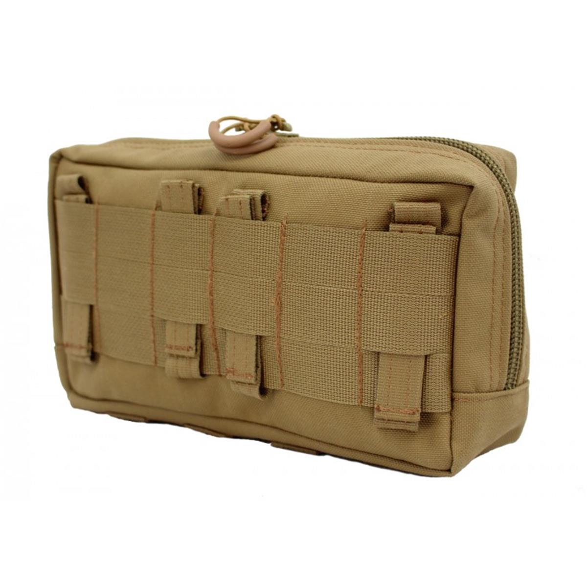 Die Mehrzwecktasche horizontal ist zur Verwendung an Kummerbunden, an Plattenträgern oder auf den Platten selbst konzipiert. Durch ihre flache Bauweise lässt sie sich auch hervorragend hinten am Gefechtsgurt tragen, beispielsweise als persönliche medizinische Ausstattung, für Ersatzmaterial oder Nachschub. Auf der nach aussen gewandten Innenseite sind 2 Netztaschen verbaut, in der sich Kleinkram organisieren lässt. An den angenähten Gummischlaufen auf der zum Körper gewandten Seite lassen sich größere Gegenstände fixieren.