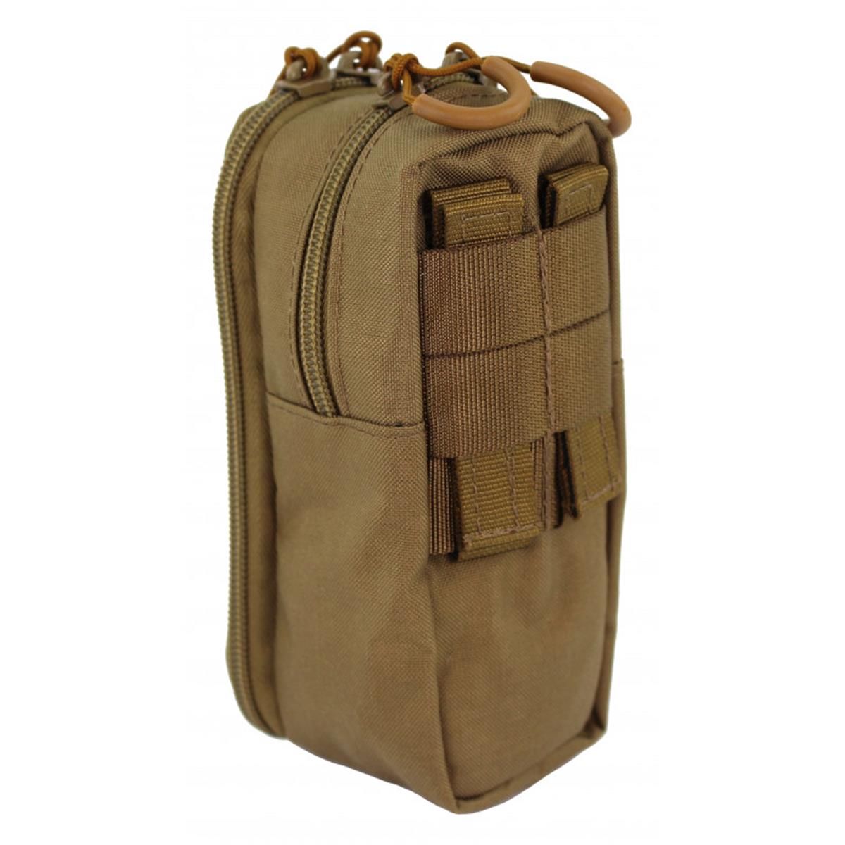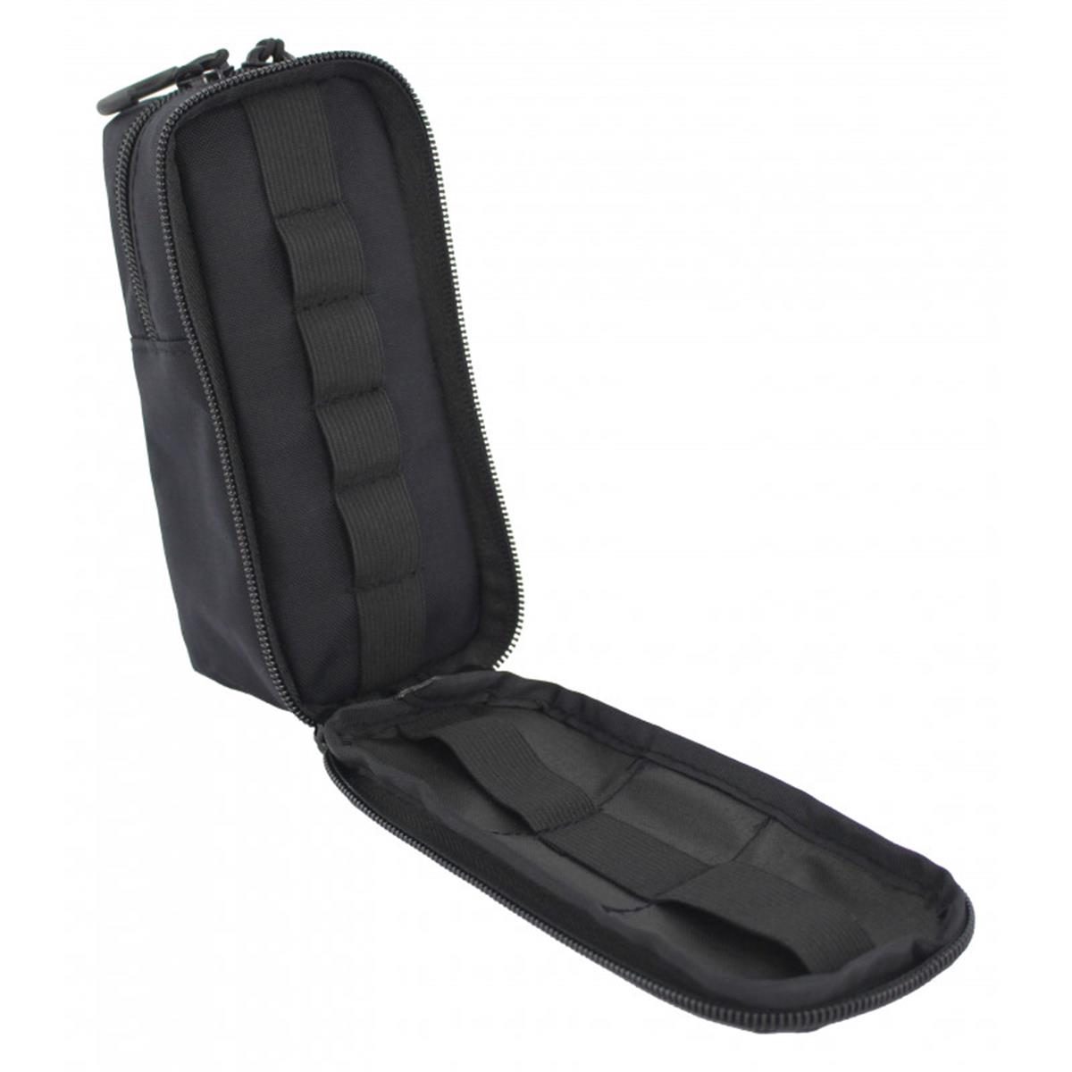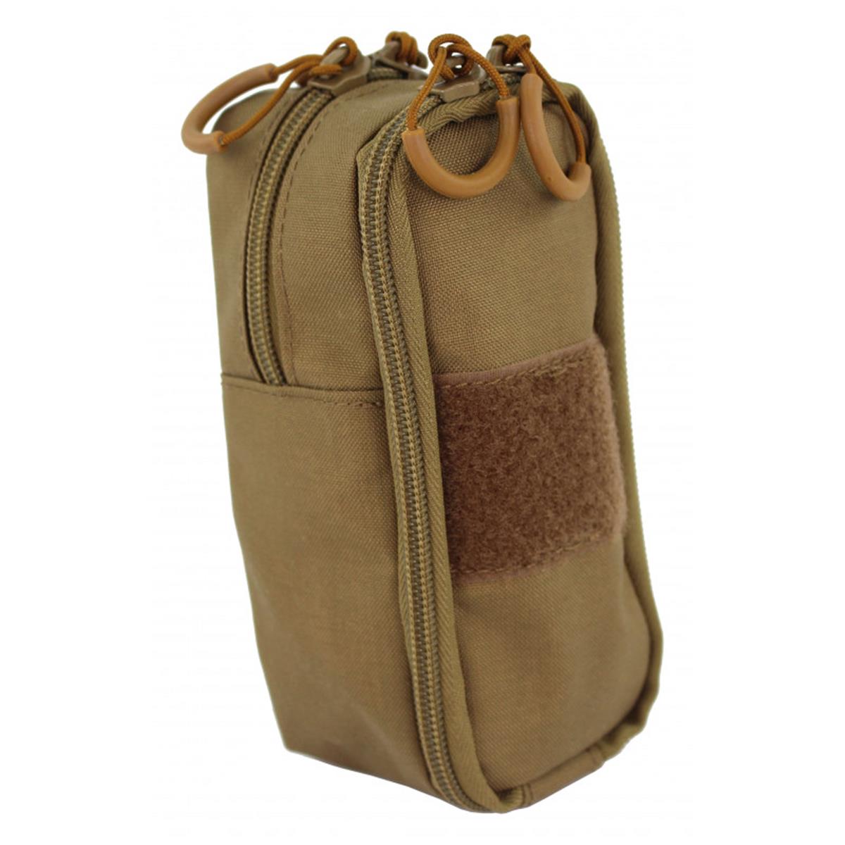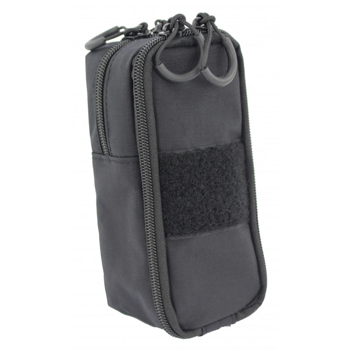 Das hintere größere Fach lässt sich zu einem Drittel über den Reißverschluss öffnen und kann Geräte wie Taschenlampen, Funkgeräten, Laternen, Kopflampen oder GPS-Geräte aufnehmen.Im Allgemeinen können Ausrüstungsgegenstände bis zu einer Größe von ca. 16 × 8 × 6 cm (H/B/T) untergebracht werden.Zur Bedienung bei schlechten Sichtverhältnissen sind beide Reißverschlüsse mit unseren Rubberpulls ausgestattet. So lassen sich die Verschlüsse leicht ertasten, damit die Tasche schnell geöffnet werden kann.Befestigen lässt sie sich die Tec-Tasche über eine doppelte Faststick-Aufnahme und kann so an allen MOLLE-Schlaufen sowie an Hosengürteln befestigt werden.