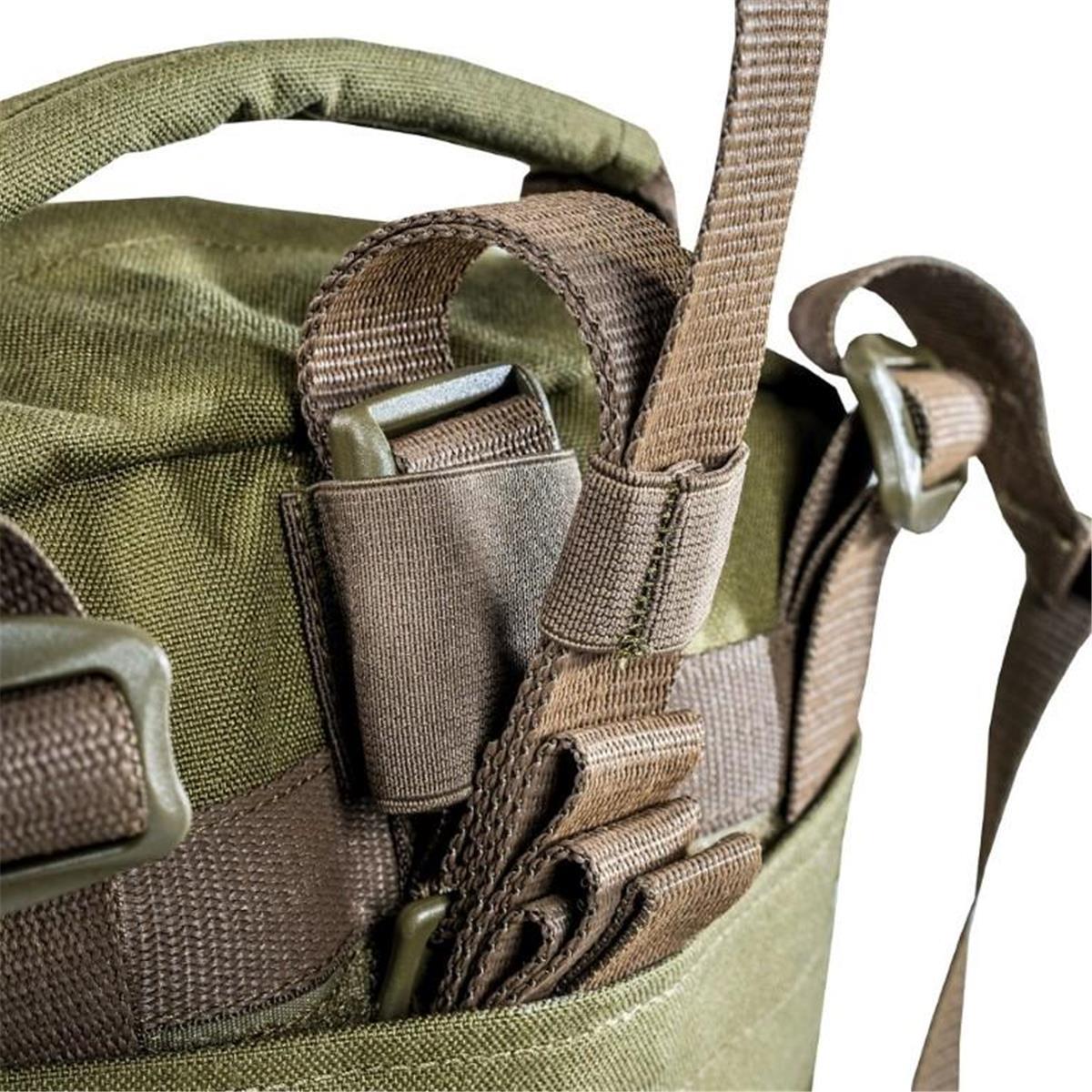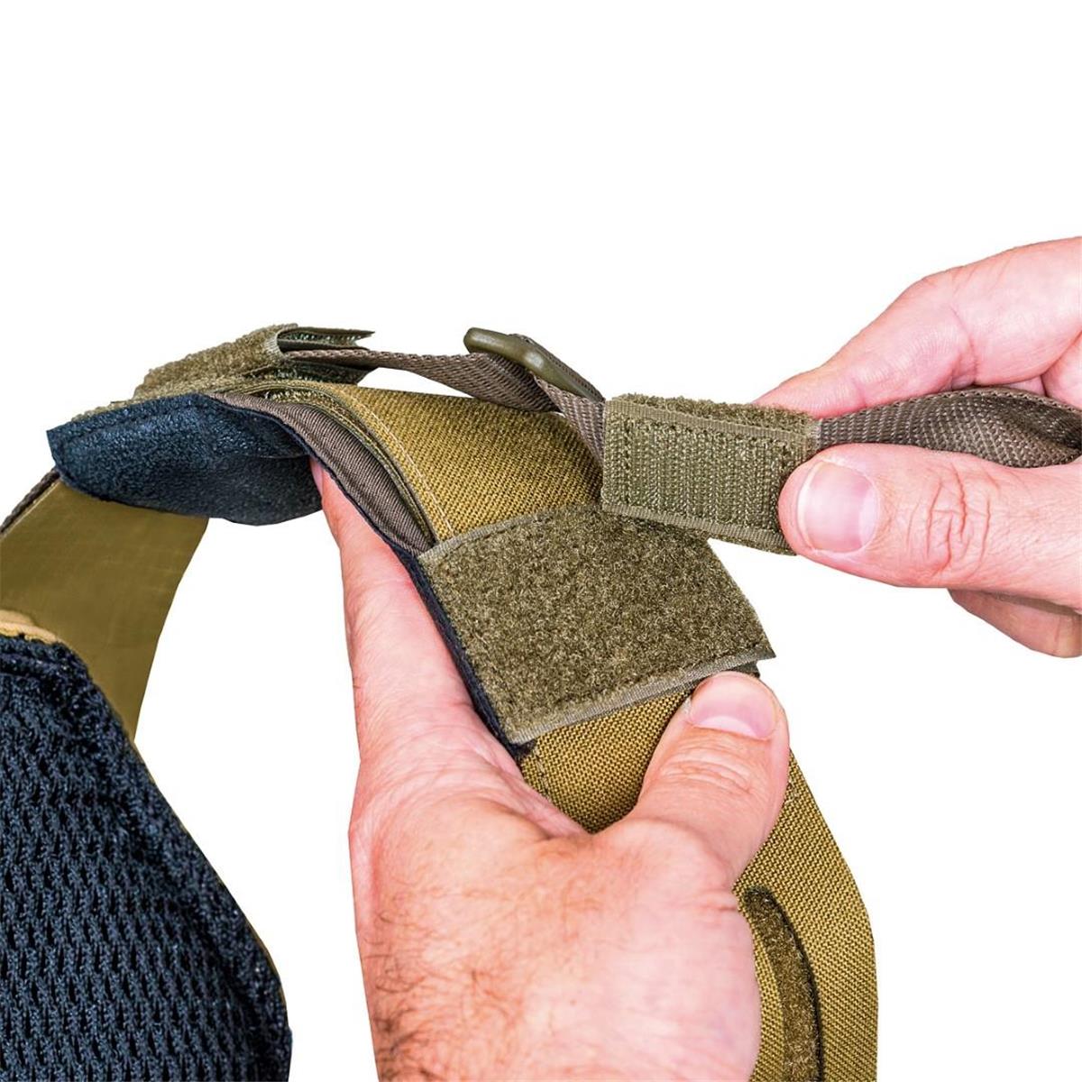 - Längenverstellbare, verstaubare Schulterriemen ermöglichen auch das Tragen über schweren Schutzwesten