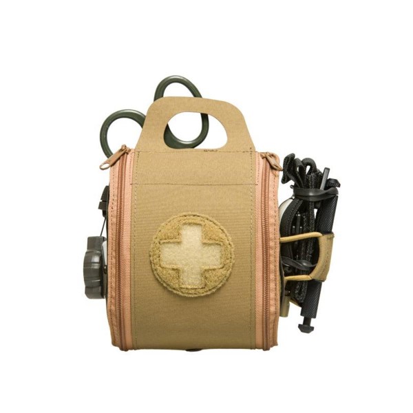 Die Tasche besteht aus einer herausnehmbaren Kunststoffplattform mit diversen Bungee-Cords zur Befestigung medizinischer Ausrüstung. Hier kann der Inhalt in verschiedenen Schlaufen und Fächern organisiert werden. Die weit zu öffnende und aufklappbare Front gewährleistet einen schnellen Zugriff auf die Ausrüstung. Gesichert wird das Material über einen Riemen mit Schnellverschluss.